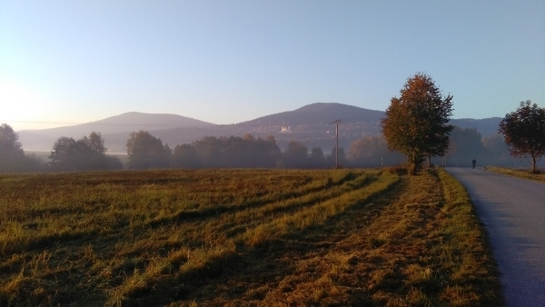 Kraví hora vpravo a vlevo Vysoká po ránu.